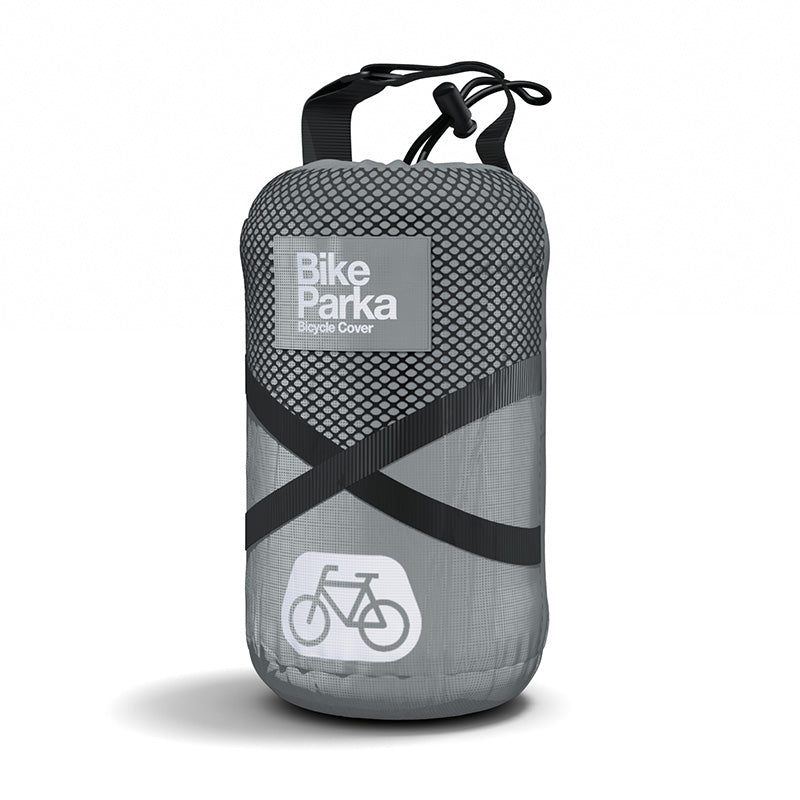 Each BikeParka comes in a tough, compact Stuff Sac, designed to attach to your bike frame or fit neatly into your bag. Measuring just 20cm x 12cm (8" x 3"), and weighing only 400 grams, the cover is lightweight and easy to store - even when wet.